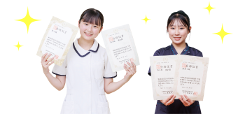 杉森高校では、各学科で様々な資格や免許を取得することができます。1年次からその取得に向け様々な取り組みを行うため、ステップアップは確実!一生モノの資格を取得し、将来に役立つこと間違いなしです!